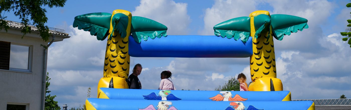 Eine riesige Hindernisbahn und eine Hüpfburg sorgten für viel Spaß und gute Laune. Wer dann noch nicht genug hatte, besuchte die Schatzsuche, fädelte Hawaiiketten, drehte am Glücksrad, lies sich schminken oder holte sich ein Popcorn oder ein Slush. Eis gab es natürlich auch und das nicht zu knapp. Die Firma Froneri Schöller stellte extra für diesen Anlass kostenlos eine große Kühltruhe mit einer großen Auswahl aus ihrem Sortiment zur Verfügung!