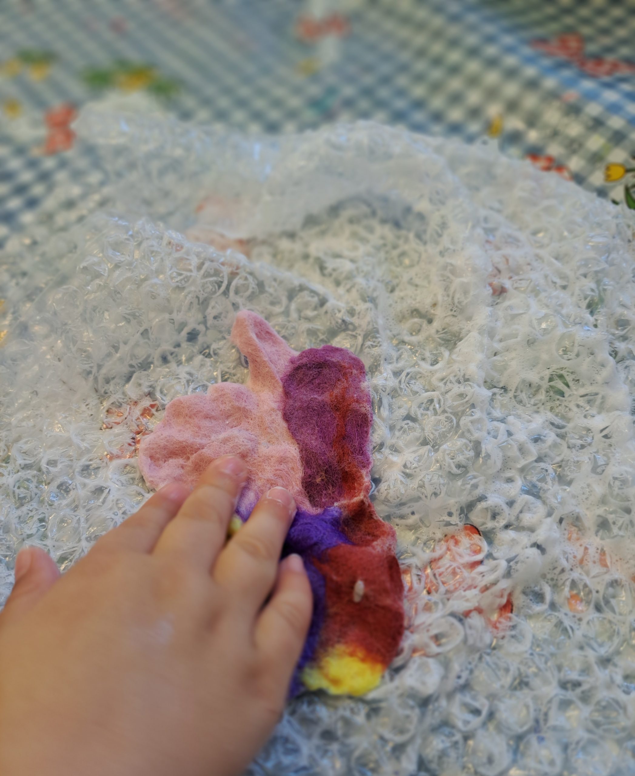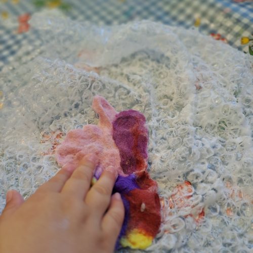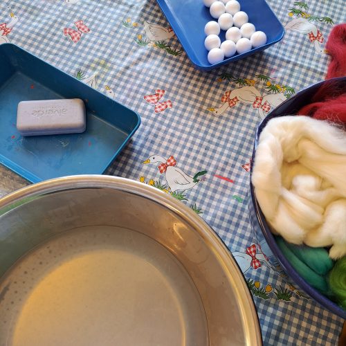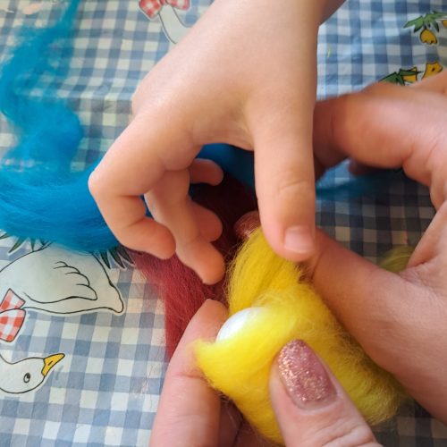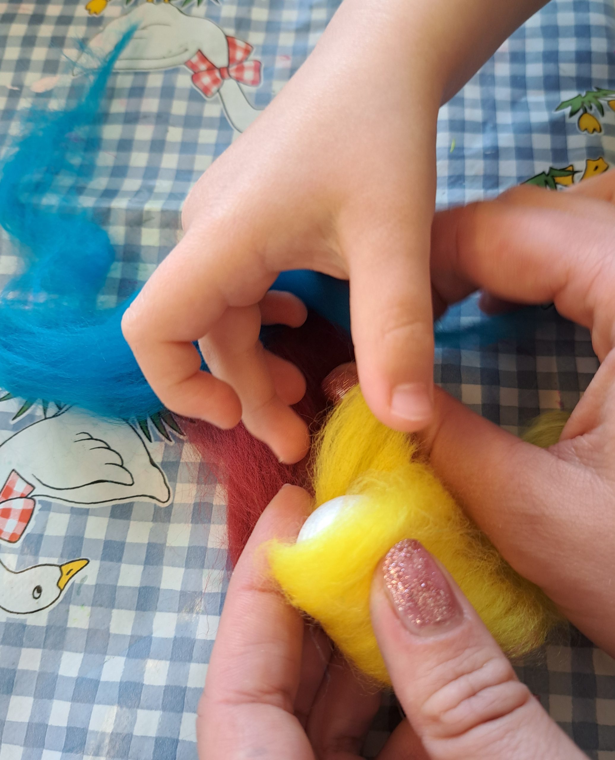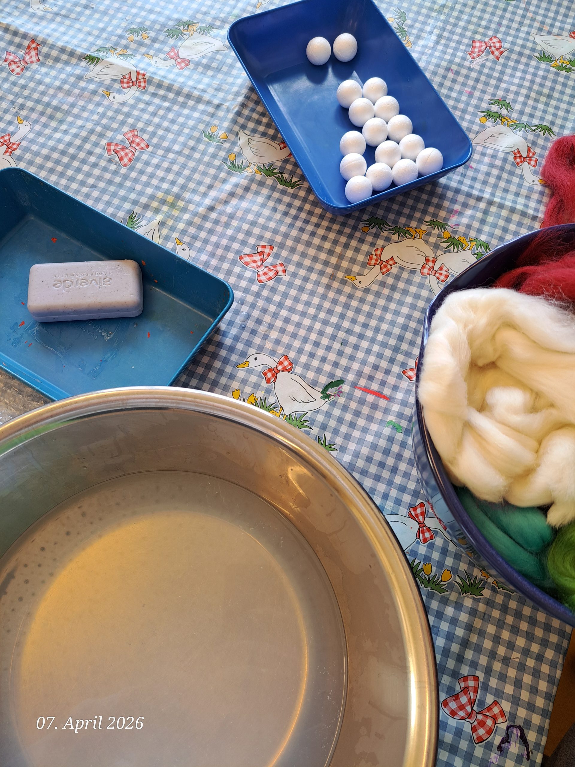 Heute haben die Krippenkinder aus Märchenwolle kleine Kugeln und flache...