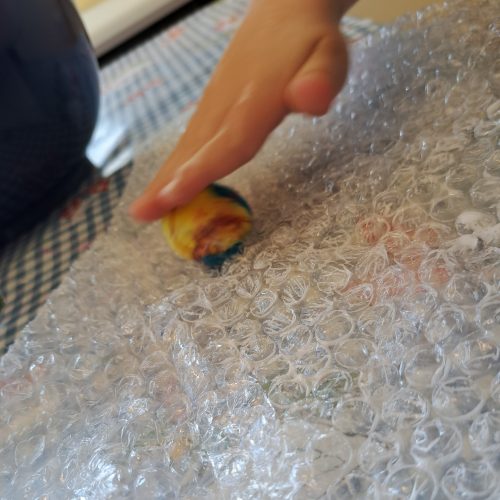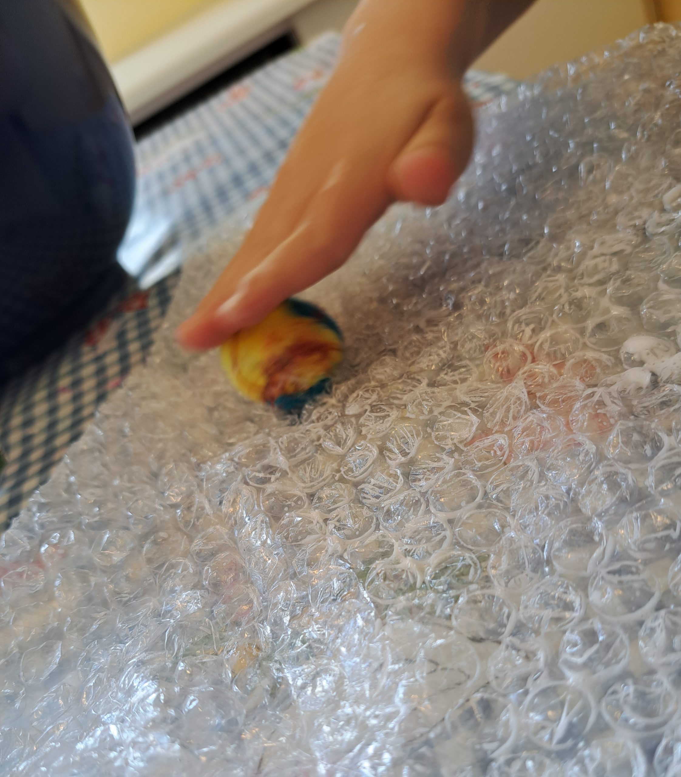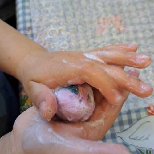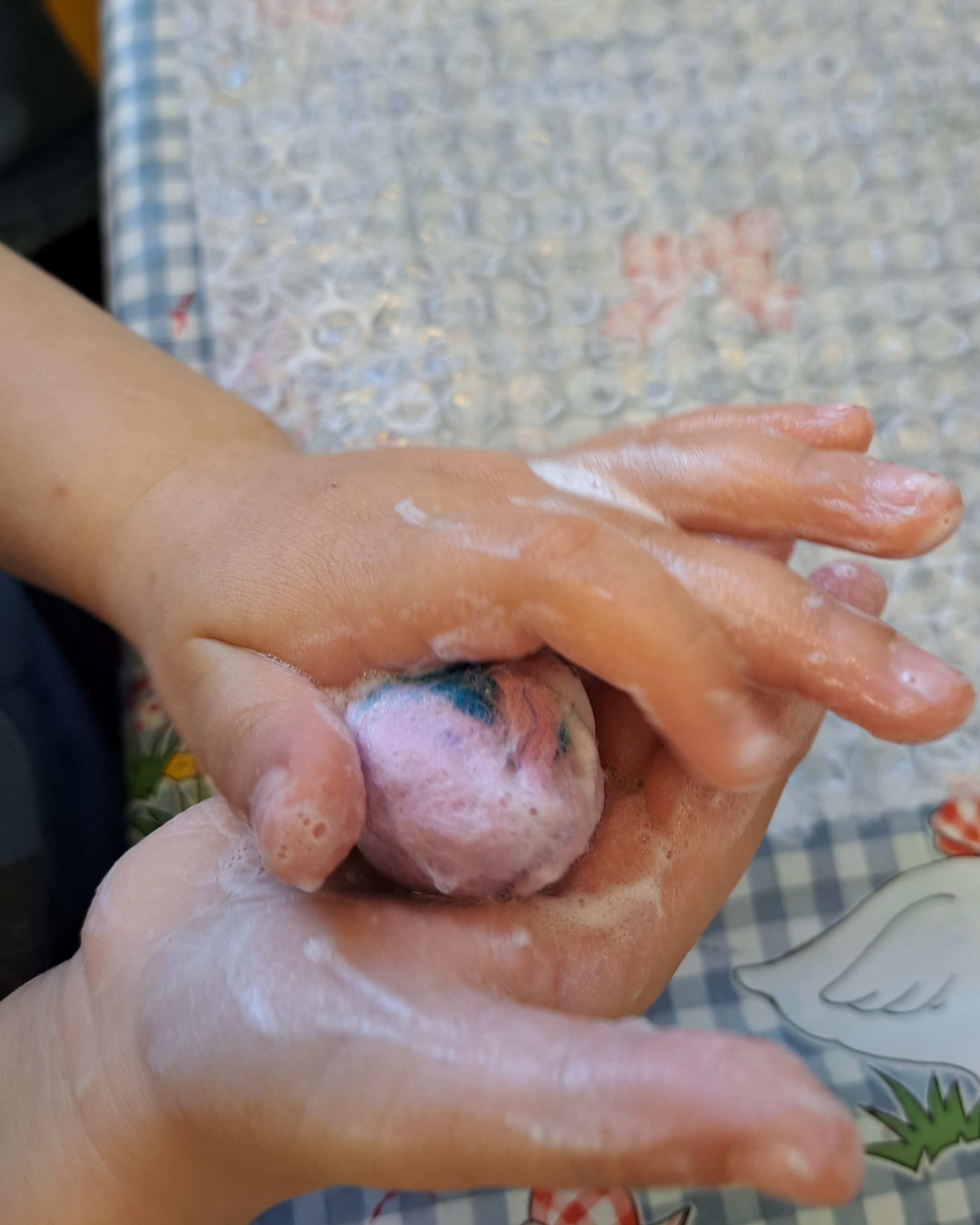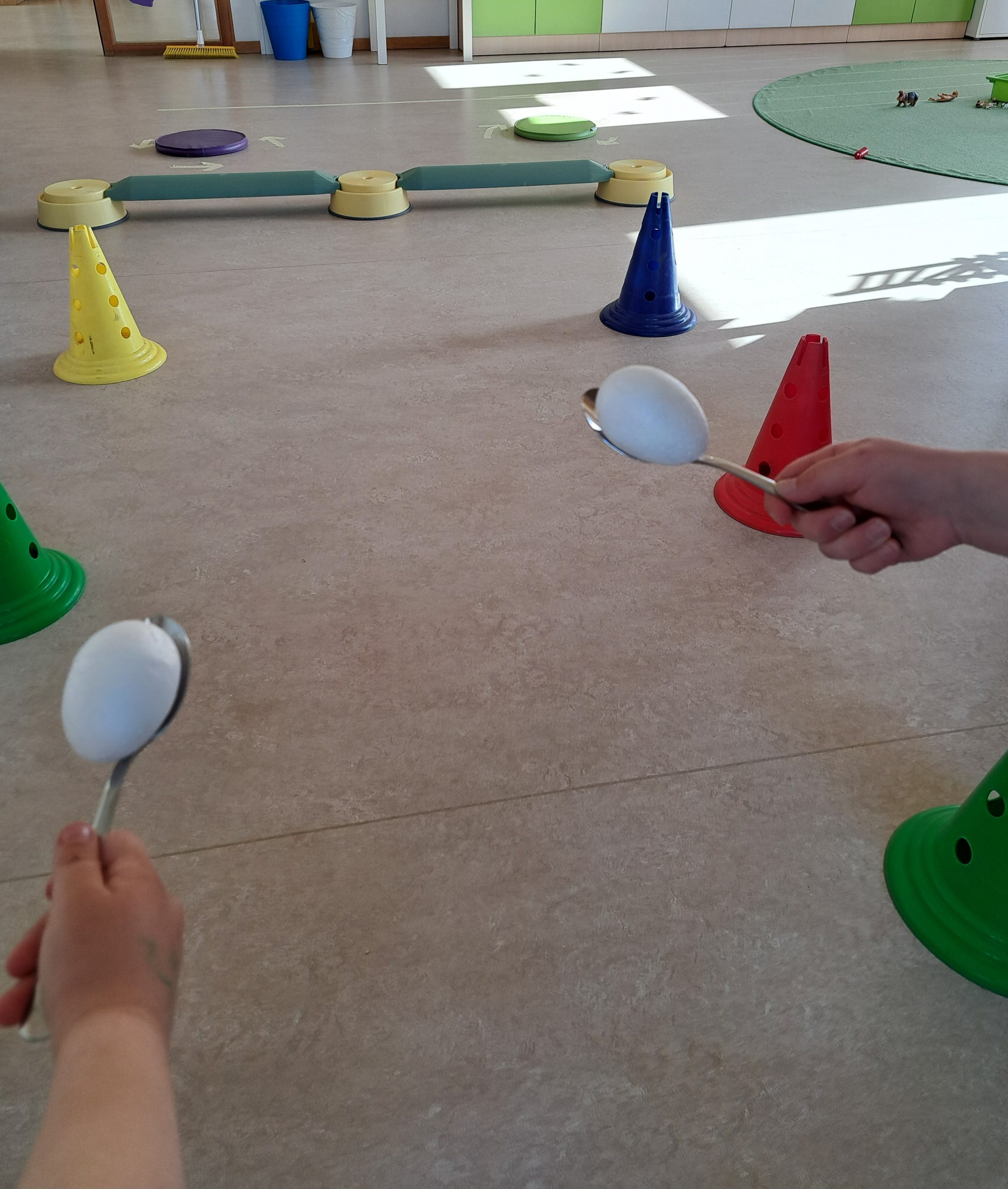 Heute haben die Krippenkinder aus Märchenwolle kleine Kugeln und flache...