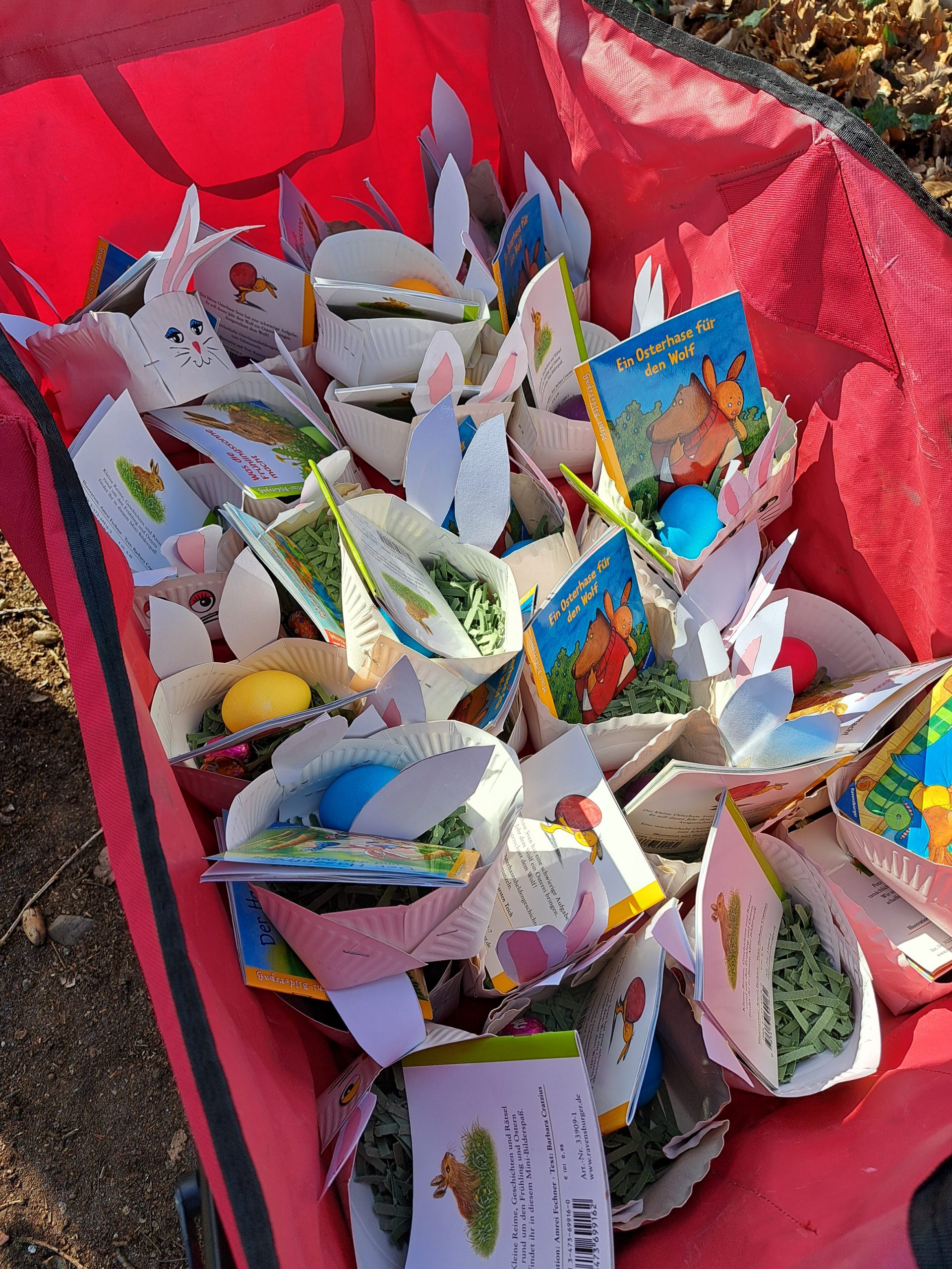 Na sowas, unsere gebastelten Osterkörbchen waren auf einmal verschwunden...🤔. Ob...