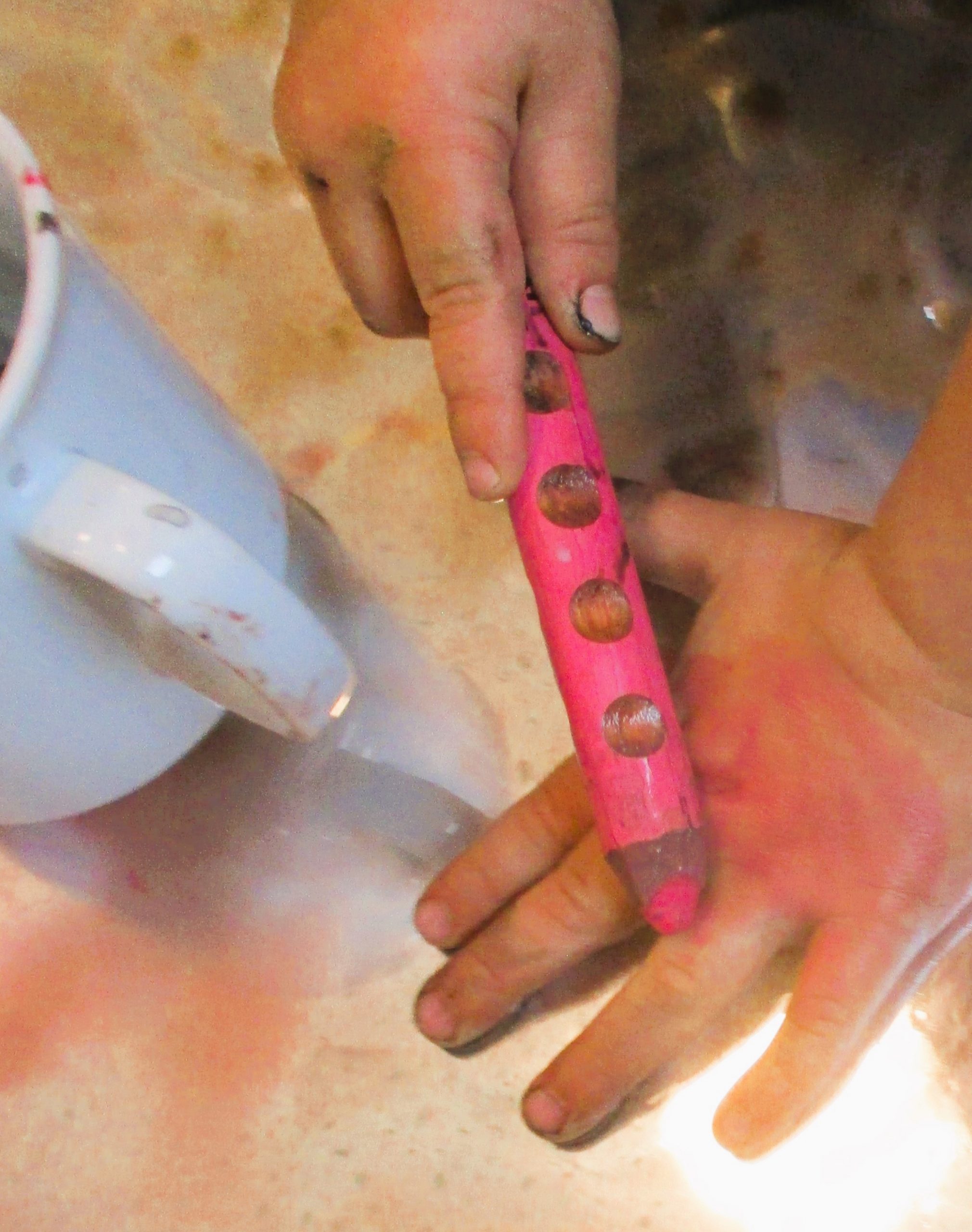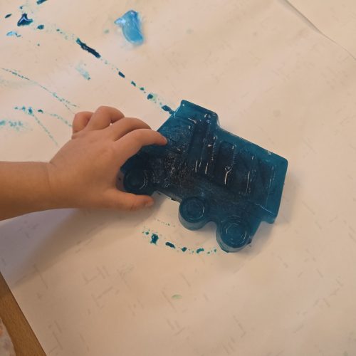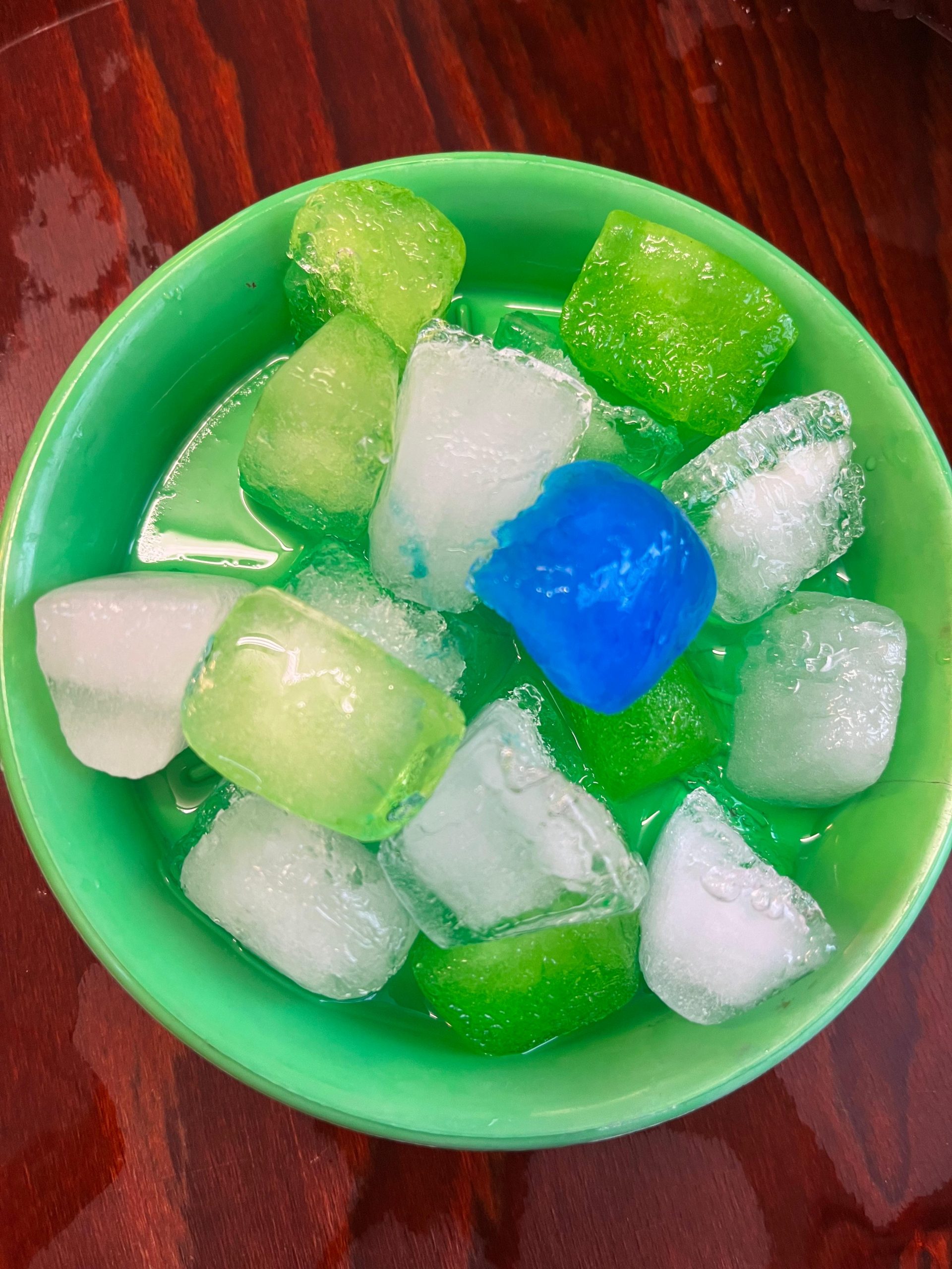 Gefärbtes Wasser, eingefroren in Sandförmchen, wurde bei uns zum echten...