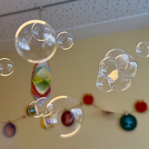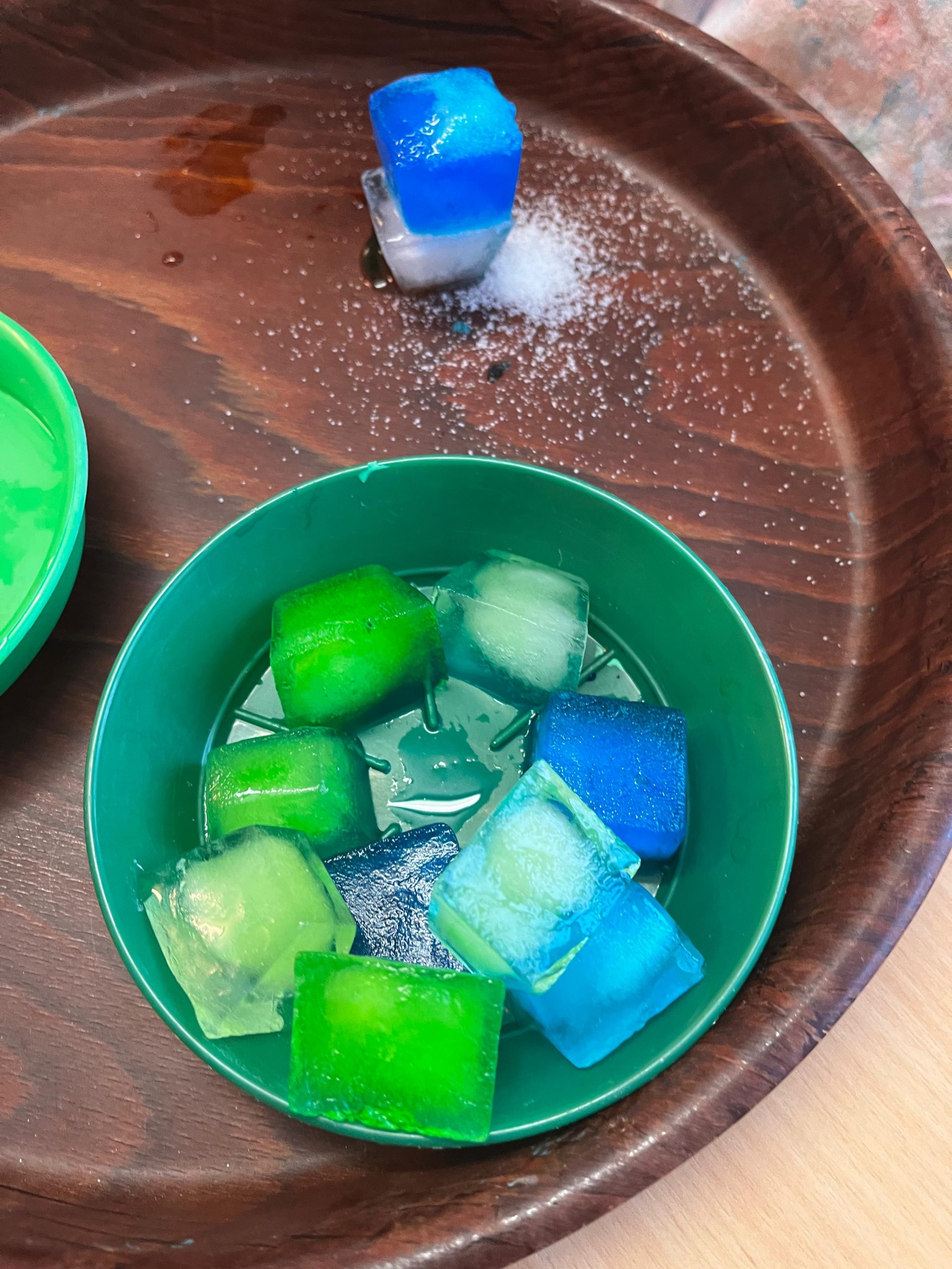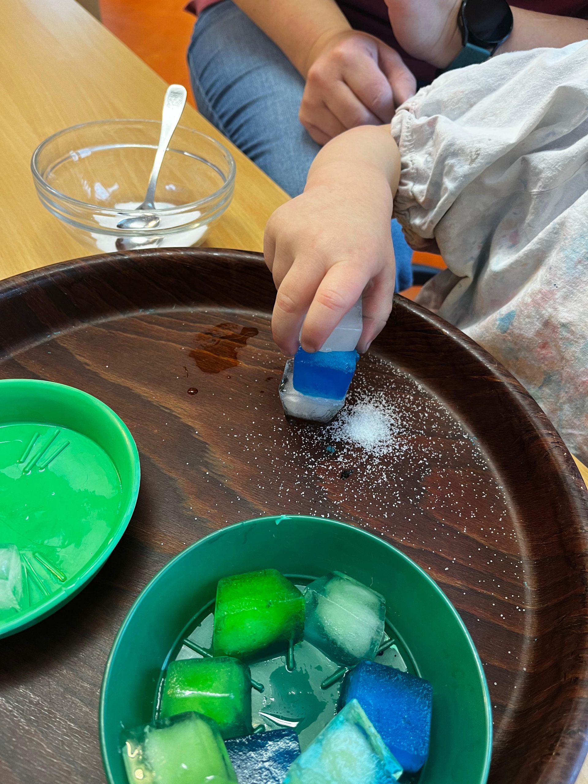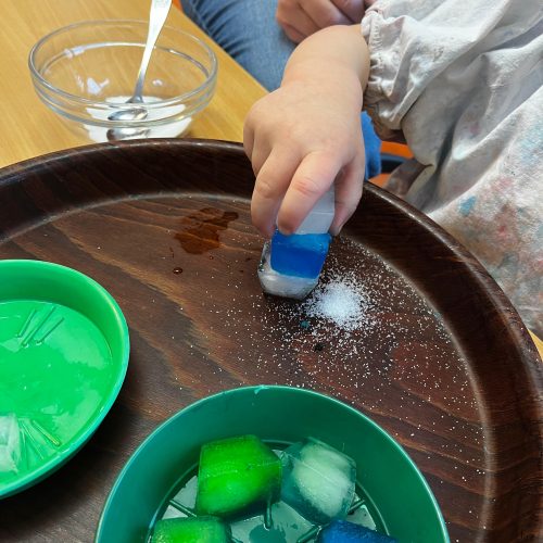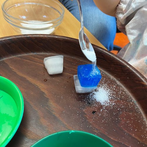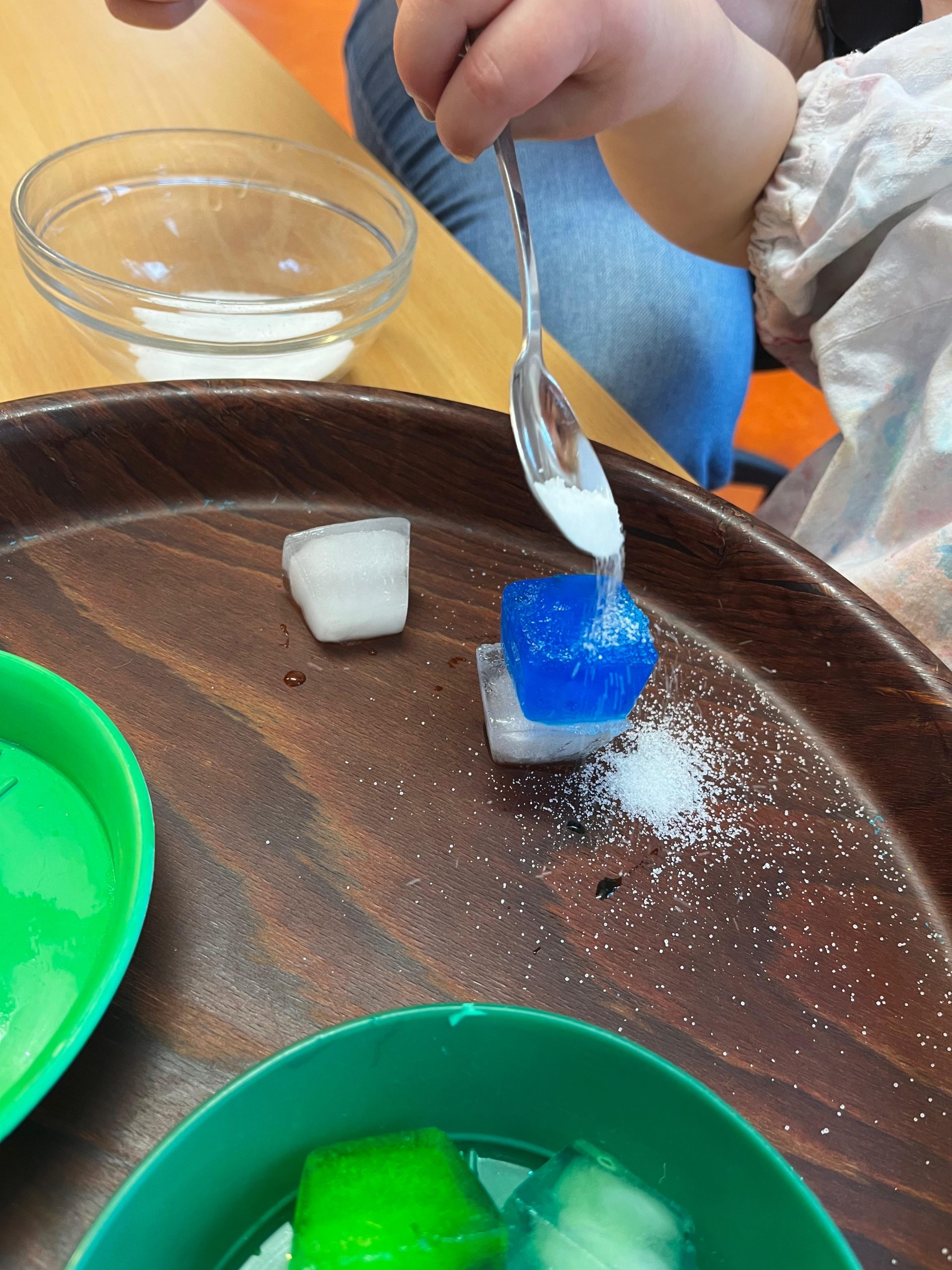 Mit gefärbten Eiswürfeln und Salz wurde heute in der Krippe...