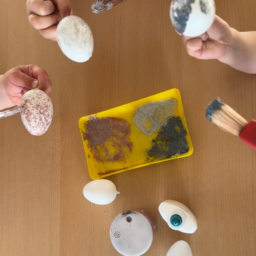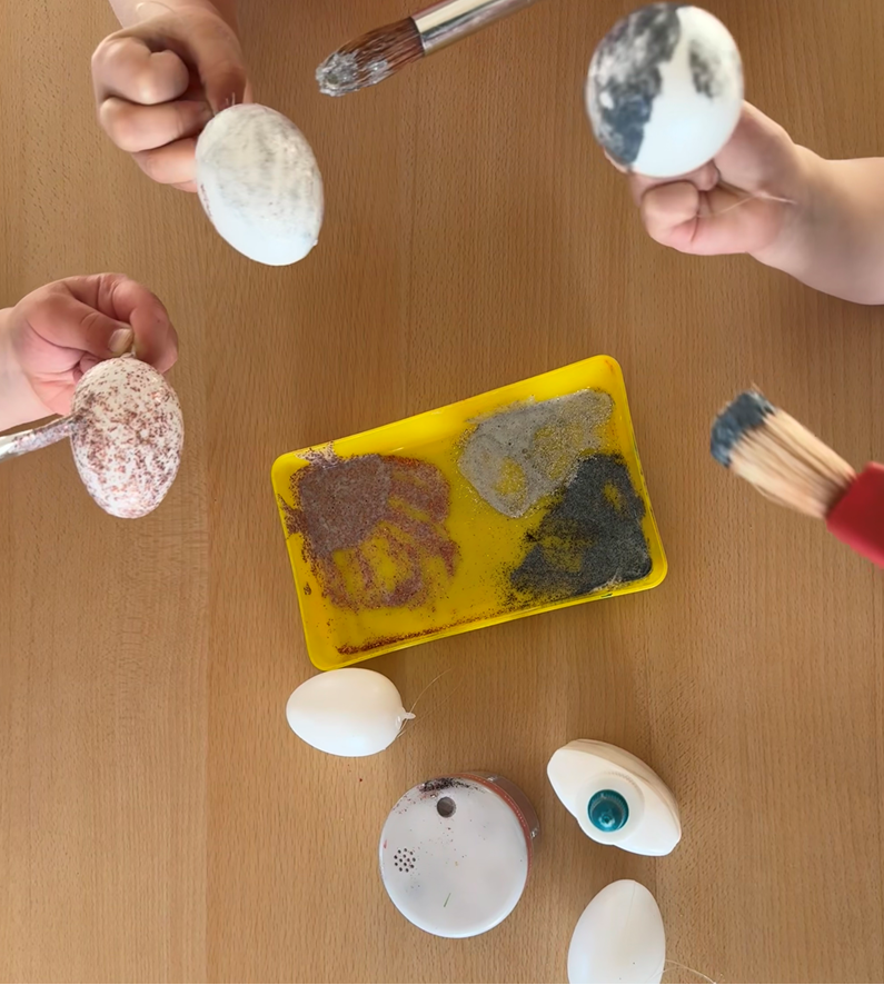Die Kinder gestalten fleißig Ostereier, denn bald geht die Suche...