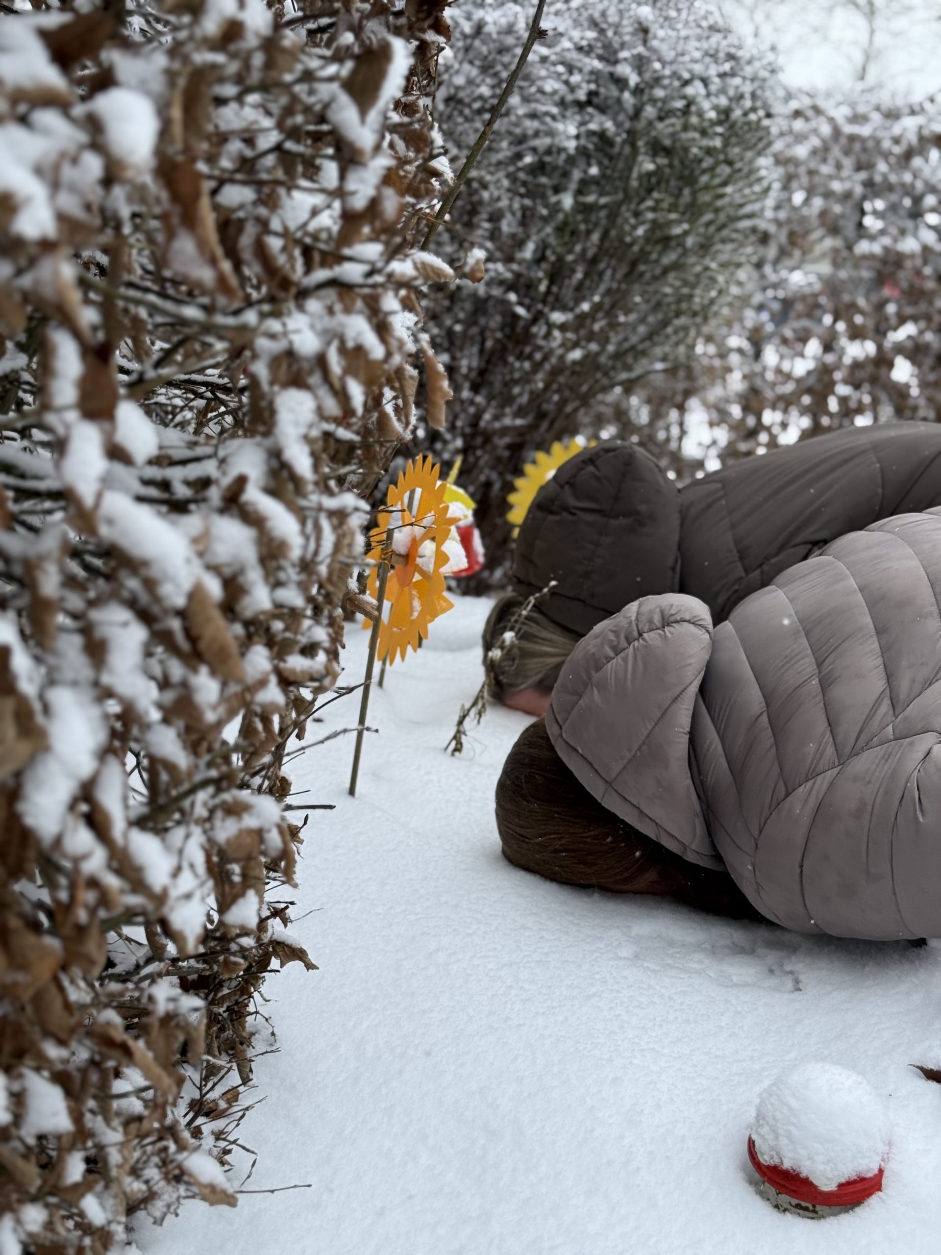 Wir haben den Schnee einfach nach drinnen geholt, bevor er...